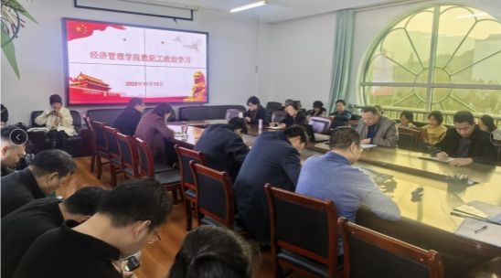 (经济管理学院 通讯员 田玲 孙正新)为深入贯彻落实党的二十届四中全会精神,提升教职工政治素养,11月13日下午4:00,经济管理学院在N4-312会议室开展本月教职工政治学习,全体教职工参加了会议。